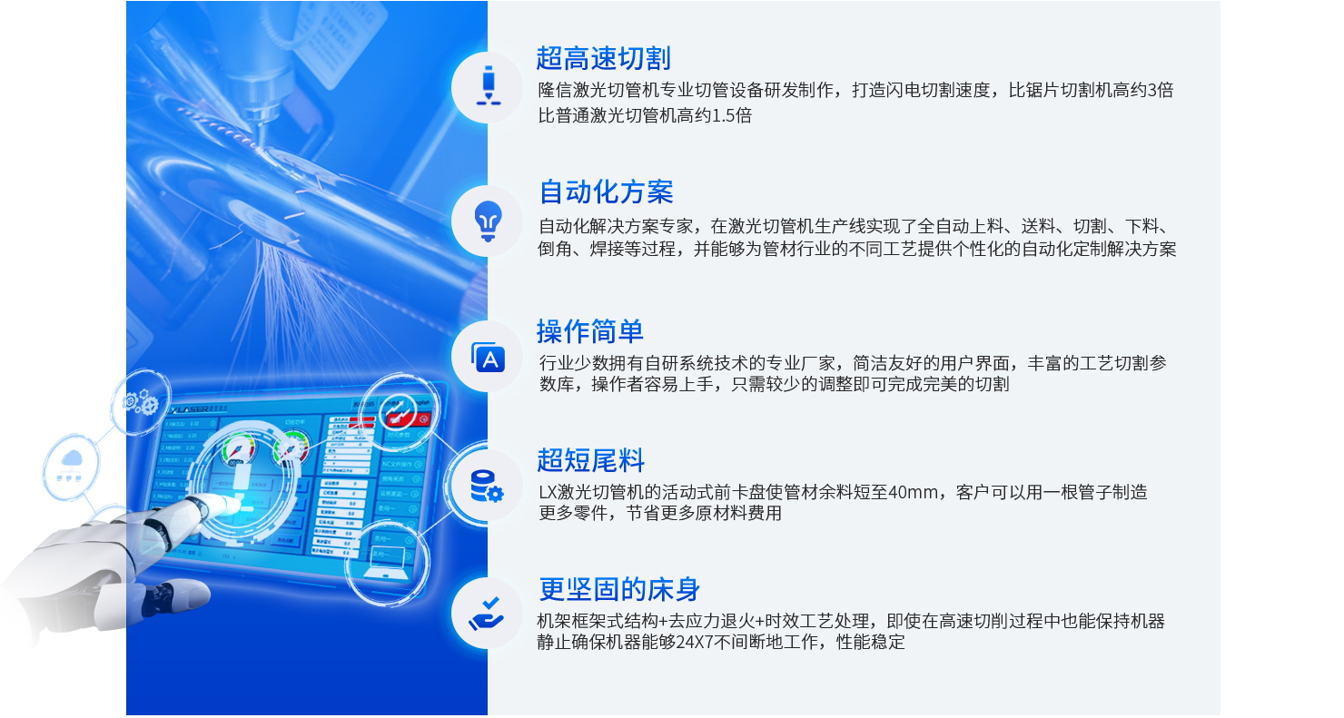 隆信激光走在激光切管技術(shù)前沿,不斷突破界限,參與起草樹(shù)立新的行業(yè)標(biāo)準(zhǔn)及重點(diǎn)領(lǐng)域應(yīng)用的攻關(guān)